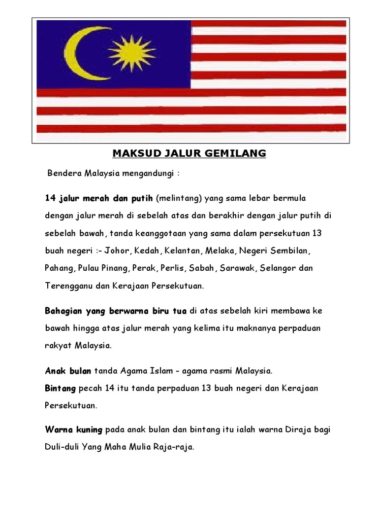 Yang sama dan arah yang sama yang dianuti oleh rakyat negara ini. Sebelum tu apa kata kita kongsi dulu maksud Jalur Gemilang. MAKSUD LAMBANG DAN WARNA PADA BENDERA MALAYSIA Setiap lambang dan warna yang terdapat pada Bendera Malaysia mewakili maksud-maksud tertentu.